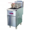 IKON Cooking Fryer, LP gas, 15-1/2"W x 30-4/5"D, millivolt thermostat, 35-40 lb capacity, (3) 30,000 BTU heat tubes, drain pipe holder, (2) nickel-plated baskets, stainless steel front & door, galvanized steel sides & back, (4) casters, 90,000 BTU total, CSA-Sanitation, CSA Flame, CSA Star