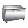 IKON Refrigeration Sandwich / Salad Prep Unit, two-section,15.5 cu. ft. capacity, 61-1/5"W x 29-9/10"D x 43-1/5"H, stainless steel top with opening for (16) 1/6 pans (included), (2) solid hinged doors, (2) adjustable shelves, removable cutting board, electronic thermostat, 33° - 40°F temperature range, digital LED temperature display, automatic defrost, interior: 304 stainless steel floor, aluminum back wall, ABS side walls & door backs, stainless steel exterior, 2-1/2" swivel casters (2) braked, rear mounted self-contained refrigeration system, R290 refrigerant, 1/2 HP, 115v/60/1-ph, 4.3 amps, NEMA 5-15P, cULus, UL EPH