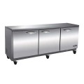 IKON Refrigeration Undercounter Refrigerator, three-section,18 cu. ft. capacity, 71-7/10"W x 29-9/10"D x 35-1/2"H, stainless steel top, (3) solid hinged doors, (3) epoxy coated wire shelves, electronic thermostat, 33° - 40°F temperature range, digital LED temperature display, automatic defrost, interior: 304 stainless steel floor, aluminum back wall, ABS side walls & door backs, stainless steel front & sides, 2-1/2" casters with (2) braked, rear mounted self-contained refrigeration system, R290 refrigerant, 3/8 HP, 115v/60/1-ph, 3.5 amps, NEMA 5-15P, cETLus, ETL-Sanitation