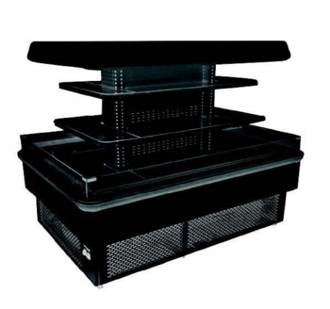 Kool-It Karusel Series Multi-Deck Island Merchandiser, self-service, 22.4 cu.ft. capacity, 66"W x 46"D x 56"H, self-contained refrigeration system, -39°F - 54°F temperature range, digital thermostat control, (2) shelves, LED lighting, automatic defrost, black interior, stainless steel base, black exterior, (4) leveling feet, R448A refrigerant, 220v/60/1-ph, 3 amps, cord with NEMA 6-15P, cETLus, ETL-Sanitation