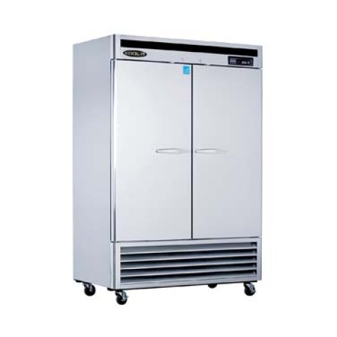 Kool-It Signature Freezer, reach-in, two-section, 42.3 cu. ft. capacity, 53-9/10"W x 32-3/4"D x 82-7/10"H, (2) locking solid stainless steel doors, open door alert, (6) adjustable shelves, accommodates full-size sheet pans, LED interior lighting, digital temperature display, automatic defrost, stainless steel interior & exterior, (4) 4" swivel casters (2 braked), bottom mounted self-contained refrigeration system, R290 refrigerant, 1/2 HP, 115v/60/1-ph, 6.6 amps, cord, NEMA 5-15P, cETLus, ETL-Sanitation, ENERGY STAR®