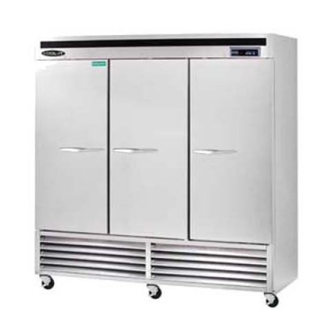 Kool-It Signature Freezer, reach-in, three-section, 66 cu. ft., 81"W x 32-3/4"D x 82-7/10"H, (3) locking solid stainless steel doors, open door alert, digital temperature display, stainless steel interior, (9) adjustable shelves, interior lighting, accommodates full-size sheet pans, stainless steel exterior, (4) 4" swivel casters (2 braked), bottom mounted self-contained refrigeration, R290 refrigerant, 1 HP, 115v/60/1-ph, cord, 9.9 amps, NEMA 5-15P, ETL-Sanitation, cETLus, ENERGY STAR®