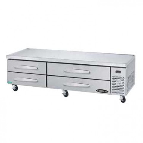 Kool-It Signature Chef Base Refrigerator, 83-1/4"W x 30-1/2"D x 25-1/2"H, solid stainless steel top with marine edge, (4) drawers, (10) full size pan capacity, 33°F to 39°F temperature range, digital temperature display, stainless steel front, sides & interior, 5" swivel casters with (2) locking, side mounted self-contained refrigeration, R290 refrigerant, 1/4 HP, 115v/60/1-ph, 3.5 amps, cord, NEMA 5-15P, cETLus, ETL-Sanitation