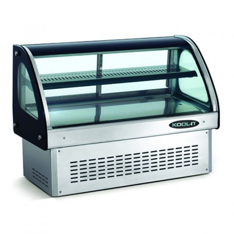 Kool-It Countertop/Drop-In Deli Case, service type, 7.2 cu. ft. capacity, 48"W x 22.6"D x 27.4"H, slanted double paned front glass, tempered glass sides, (2) removable rear sliding glass doors, stainless steel deck, (2) adjustable shelves, LED interior lighting, 36°-41°F temperature range with digital display on rear control panel, black exterior, bottom mounted self-contained refrigeration, R290 Hydrocarbon refrigerant, 1/3 HP, 3.9 amps, 120v/60/1-ph, cord with NEMA 5-15P, ETL-Sanitation, cETLus