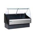 Hydra-Kool Fresh Meats/Deli Case, service type, multiplexible, 60"W x 43-5/16"D x 49-13/32"H, tilt-forward curved front tempered glass with anti condensate system, tempered glass sides, rear removable tempered sliding glass doors, LED interior lighting, stainless steel interior, digital controller, 9-27/32"D top sill, 8-35/64"D rear work shelf, PVC coated silver steel front panel, gray kick plate, adjustable feet, self-contained refrigeration, 1/2 HP, ETL-Sanitation, cETLus