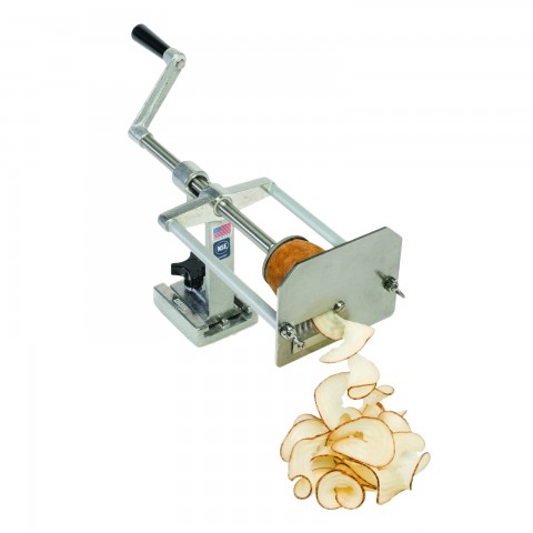 Spiral Fry™ Wavy Ribbon Fry Kutter, manual, mounts securely on any flat surface for left or right handed operation, preset drive depth protects contact of potato holder with cutting blade, easy-action screw drive automatically releases at end of stroke to retract for fast reloading, cast aluminum & stainless steel, NSF, Made in USA