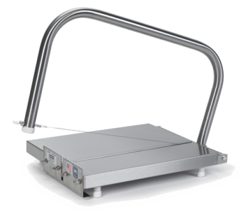 Easy Cheese Blocker™, calibrated, notched, 1/2" cutting guide, cutting bow ensure straight, cutting wire, process 40 lb. cheese block, 35 lb. wheels or smaller, stainless steel construction, NSF