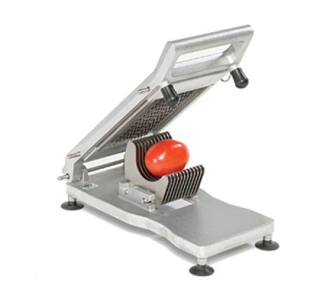 Roma Plus Tomato Slicer, 1/4" slice, razor-sharp blades, pretensions scalloped blade assembly, cast aluminum frame, suction-cup feet, rapid-release safety mechanism locks handle into place with open, NSF