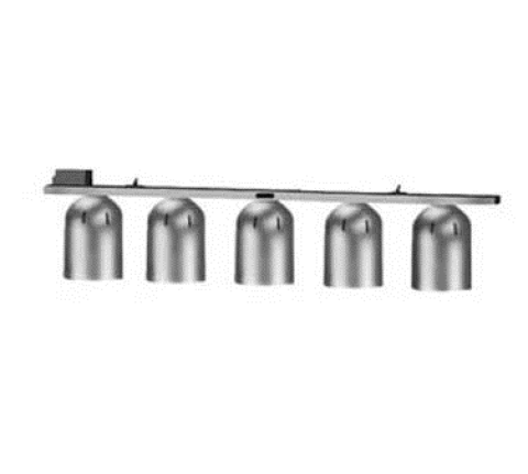 Heat Lamp, single row suspension bar, chain hung, 5 bulb, 120v/60/1ph, 1250 watts, white 250 watt infrared bulbs standard, red 250 watt infrared bulb and white shatter-resistant 250 watt bulb also available