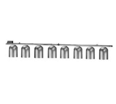 Heat Lamp, single row suspension bar, chain hung, 8 bulb, 120v/60/1ph, 2000 watts, white 250 watt infrared bulbs standard, red 250 watt infrared bulb and white shatter-resistant 250 watt bulb also available
