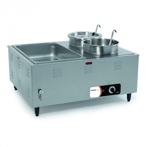 Mini Steamtable, 27-1/2" x 24-1/2" x 12-1/2", constructed of brushed stainless steel, front drain valves, wet or dry operation, extra deep wells, precise, thermostats, temp. range 100-200°F, 120v/60/1ph, 1800 watts, 15 amps, 6' cord and plug