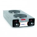 Hotplate, vertical double burner, 25-1/2" W, brushed stainless steel construction, cast iron alloy burners, six position temperature control, built in thermo protection, .5kw rear, 1.5kw front, 120v/60/1ph, 2000 watts, 16.7 amps, cord & 5-20P