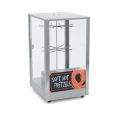 Pretzel Merchandiser, 27-1/4" x 15-1/8" x 18-1/8", revolving, stainless steel construction, tempered glass case, illuminated interior, thermostat control, stainless steel, 120v/60/1ph, 290 watts, 2.4 amps, NSF