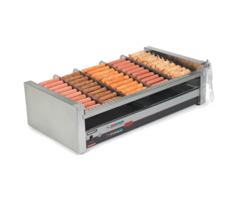 Roller Grill, counter top, roller-type, digital controls, slanted chrome rollers, (50) 6" hot dogs capacity, 360° roller rotation, black front & white rear rollers, stainless steel construction, 120V/60/1-ph, 1430 watts, 11.9 amps, NEMA 5-15P, NSF, cETLus