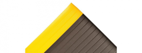 410 Airug Anti-Fatigue Floor Mat, 3' x 5', 3/8" thick, ribbed foam vinyl, textured base, black/yellow (boxed)