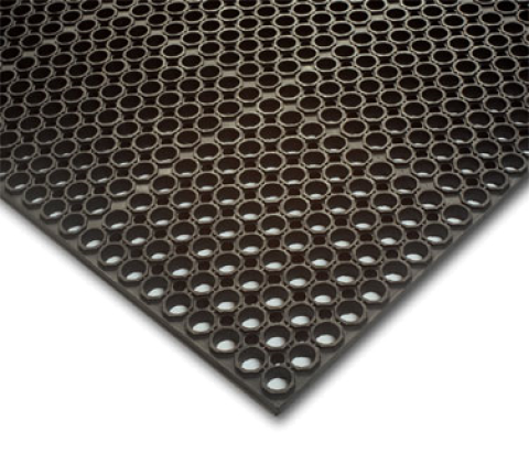 T25 Challenger® Economy General Purpose Floor Mat, 3' x 5', 3/4" thick, heavy duty rubber with anti-slip surface, drainage, black (small quantities acceptable) (boxed)