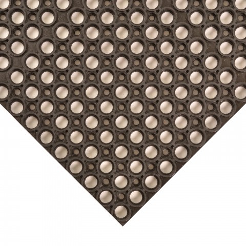 T25 Challenger® Economy General Purpose Floor Mat, 3' x 10', 3/4" thick, heavy duty rubber with anti-slip surface, drainage, black