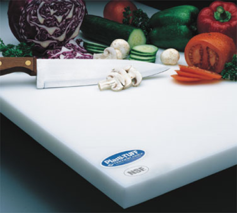 T46 Plasti-TUFF® Cutting board, 12" x 18" x 1" thick, polyethylene, white, resists warping, won't crack, splinter, swell or absorb liquids, NSF, USDA & FDA certified