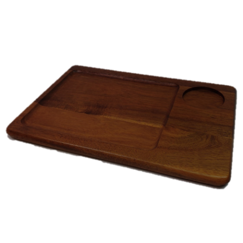 Plate, large, 12" x 8", rectangular, (1) 2-1/2" dia. well, dishwasher safe, dark acacia wood, natural