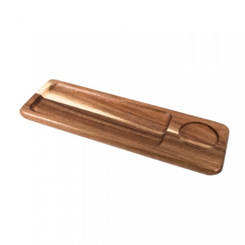 Appetizer Plate, large, 14" x 4-1/2", rectangular, (1) 2-1/2" dia. well, dishwasher safe, acacia wood, natural