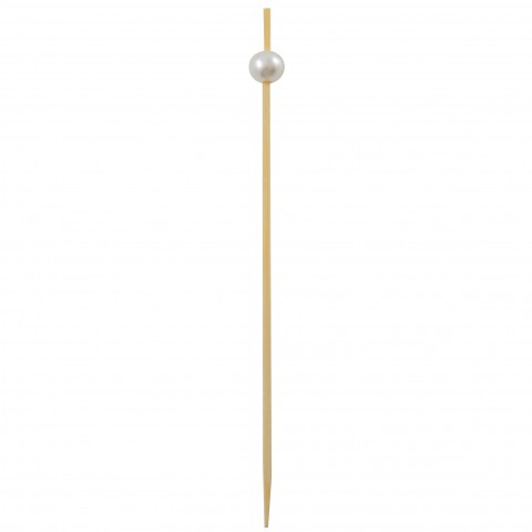 Bijou Pick, 4.75", with white pearl, freezer safe, reusable, compostable, biodegradable, bamboo, natural, (Per case = 2000 each)