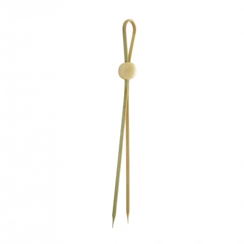 Luka Pick, 5.3", double, with natural adjustable ball, freezer safe, reusable, compostable, biodegradable, bamboo, natural, (Per case = 1000 each)