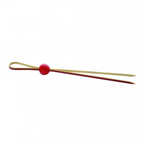 Luka Pick, 5.3", double, with red adjustable ball, freezer safe, reusable, compostable, biodegradable, bamboo, natural, (Per case = 1000 each)