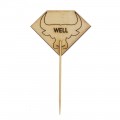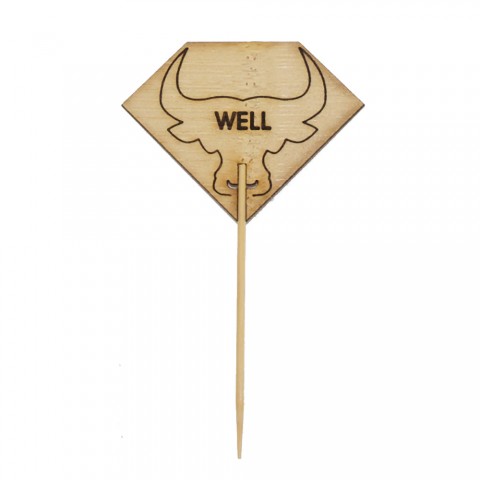 Steak Marker, 2.1"W x 3.7"H, "WELL", diamond shaped, with bull head, hot stamped, freezer safe, reusable, compostable, biodegradable, bamboo, natural, (Per case = 1000 each)