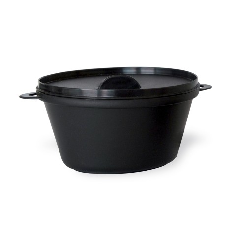 Cocktails & Events Pan, 12 oz., 5" x 4" x 3", mini, with lid, freezer safe, microwavable, grease resistant, leak proof, recyclable, plastic, black, (Per case = 144 each)