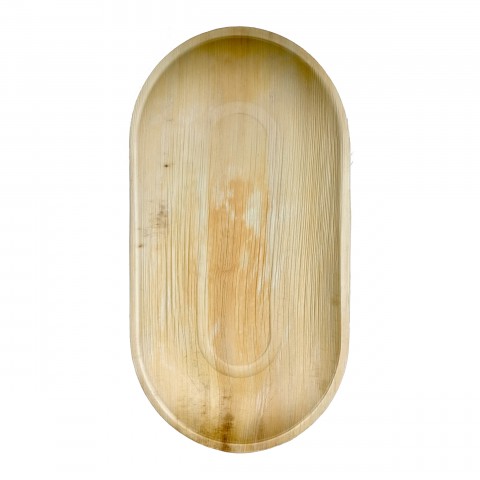 Plate, 22"L x 12 "W x 1"H, oval, oven proof up to 350°F/180°C/45 minutes, microwaveable, grease resistant, leak proof, freezer safe, reusable, compostable, palm leaf, natural, (Per case = 50 each)