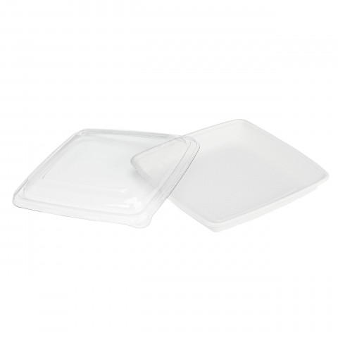 Plate, 9.25" x 9.25" x 1.1"H, square, biodegradable, sugarcane, white, (Per case = 200 each)