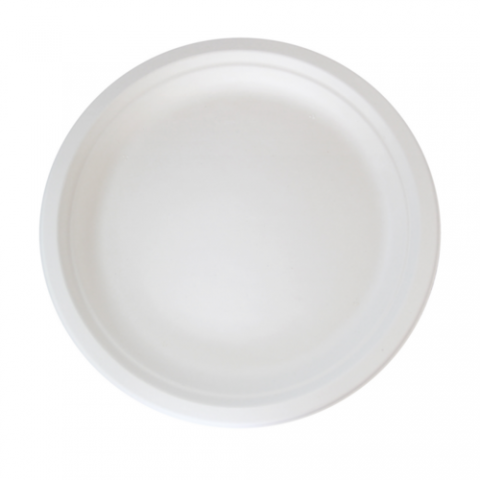 Sugarcane Plate (No added PFAs), 8.74"D, white, round, (per case = 500 each)