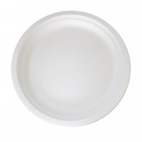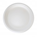 Plate, 10" dia., round, microwavable, grease resistant, freezer safe, reusable, compostable, biodegradable, sugarcane, white, (Per case = 500 each)