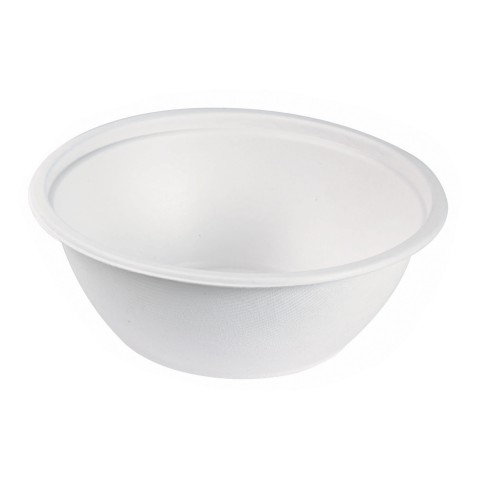 Salad Bowl, 80 oz., 9.4" dia. x 3.3", round, microwaveable, grease resistant, leak proof, freezer safe, reusable, compostable, biodegradable, sugarcane, white, (Per case = 100 each)