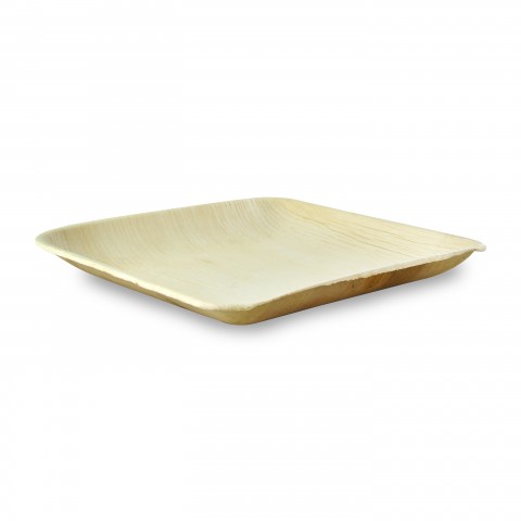 Areca Plate, 8" x 8", square, rounded corners, oven proof up to 350°F/180°C/45 minutes, microwaveable, grease resistant, leak proof, freezer safe, reusable, compostable, palm leaf, natural, (Per case = 100 each)
