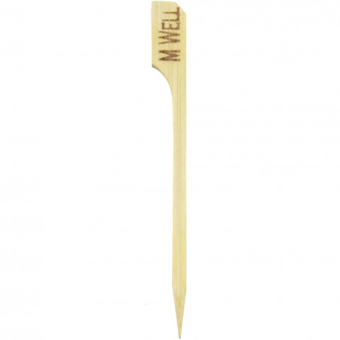 Steak Marker, 3.5", "M WELL" cooked label, hot stamped, freezer safe, reusable, compostable, biodegradable, bamboo, natural, (Per case = 1000 each)