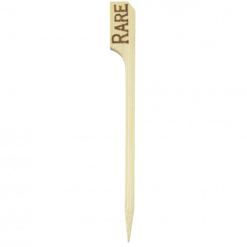 Steak Marker, 3.5", "RARE" cooked label, hot stamped, freezer safe, reusable, compostable, biodegradable, bamboo, natural, (Per case = 1000 each)