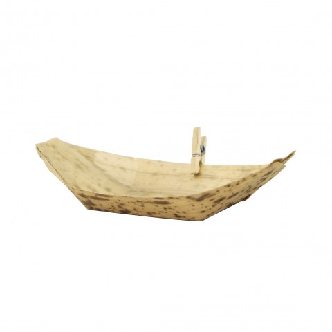 Zebra Leaf Boat 1.5 oz., 3.7" x 2.1" x 0.6"H, base: 1.4" x 1.4", grease resistant, compostable, biodegradable, bamboo leaf, natural, (Per case = 2000 each)