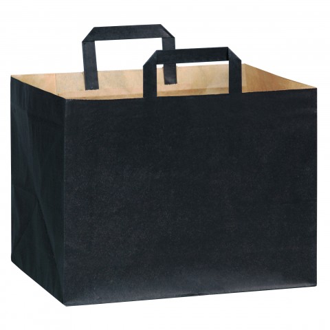 Takeout Bag, 12.5" x 8.7" x 9.65", large and wide, freezer safe, recyclable, paper, black (Per case = 250 each)
