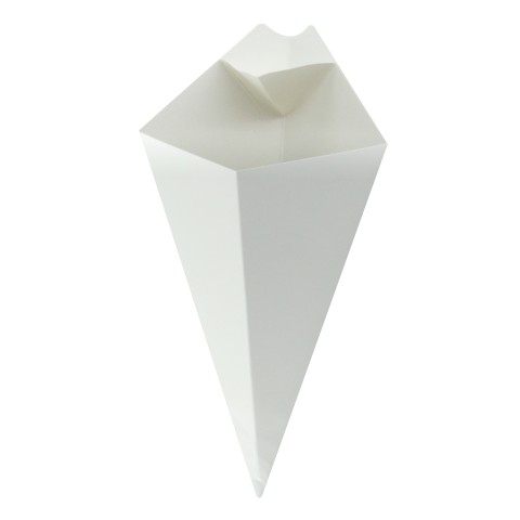 Cone, 14 oz., 6.5" x 11", large, with built-in sauce cup, grease resistant, microwaveable, freezer safe, recyclable, paper, white, (Per case = 500 each)