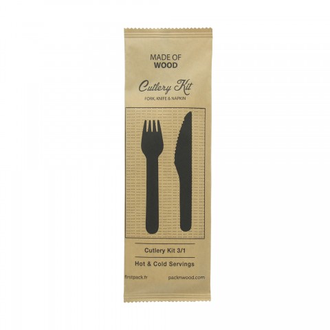 Cutlery Kit, Wooden Cutlery 3/1 kit (Knife + Fork + Napkin), 6.2in, wood, wood, (Per case = 250 each)