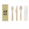 Eco Cutlery 4/1 Kit, 6.2", includes: (1) knife, (1) fork, (1) spoon, and (1) napkin, wrapped in Kraft paper, compostable, biodegradable, wood, natural, (Per case = 250 each)