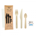 Cutlery 6/1 Kit, 6.2"L, includes: (1) knife, (1) fork, (1) tea spoon, (1) napkin and (1) salt & pepper, wood, (Per case = 250 each)