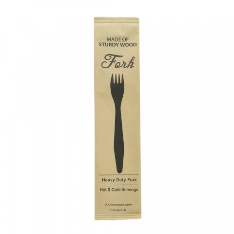 Fork, Heavy Weight Wooden Fork wrapped in paper wrapper, 7.3in, wood, wood, (Per case = 500 each)