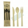 Cutlery 4/1 Kit, 8.6"L, includes: (1) 5.5" knife, (1) 6.65" fork, (1) 6.65" spoon, and (1) napkin, wrapped in Kraft paper, compostable, biodegradable, bamboo, natural, (Per case = 100 each)