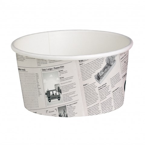 Buckaty Take Out Container, 20 oz., 4.5" dia. x 3.15"H, round, microwaveable, grease resistant, leak proof, freezer safe, recyclable, newsprint, paper, white, (Per case = 500 each)