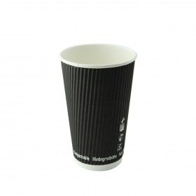Grab & Go Cups, 16 oz., 3.5'' dia. x 5.4''H, double wall, compostable, paper, black, (Per case = 500 each)