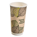Kraft Double Wall Paper Cup Without Plastic, 20oz, 3.5" D x 6.3" H, (per case = 500 each)