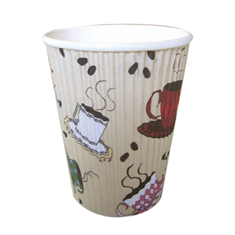 Grab & Go Coffee Cup, 12 oz., 3.5" dia., rippled exterior, freezer safe, paper, teacup design, (Per case = 500 each)