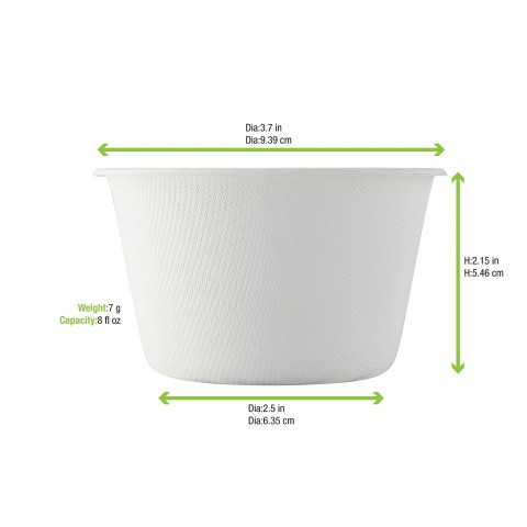 Bowl, White Sugarcane Takeout Bowl, 8.5oz Dia:3.7in H:2.15in, sugarcane, white, (Per case = 1000 each)